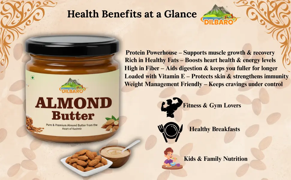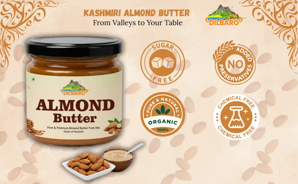 Rich in protein, healthy fats, fiber, and antioxidants, this almond butter helps support energy, muscle recovery, and heart health. Whether you spread it on toast, blend it in smoothies, or add it to desserts, it brings the authentic taste of Kashmir straight to your table.